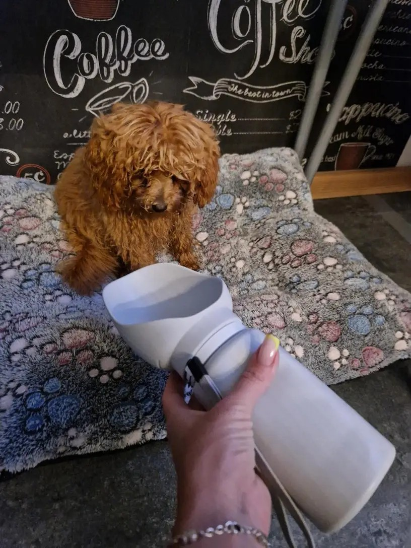 Die clevere Hundeflasche mit integrierter Trinkschale für unterwegs: kompakt und faltbar, per Knopfdruck einsatzbereit – für die gesunde Hydration deines Vierbeiners bei jedem Abenteuer.